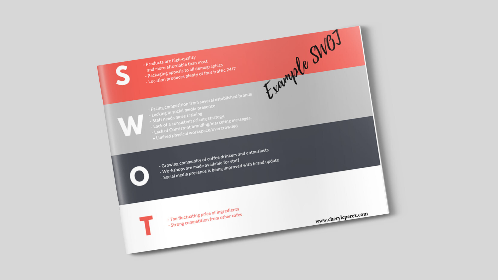 Guaranteed to give you a helpful exercise to identify your strengths, weaknesses, opportunities, and threats, and will help resolve that emotional whirlwind you're feeling from above!